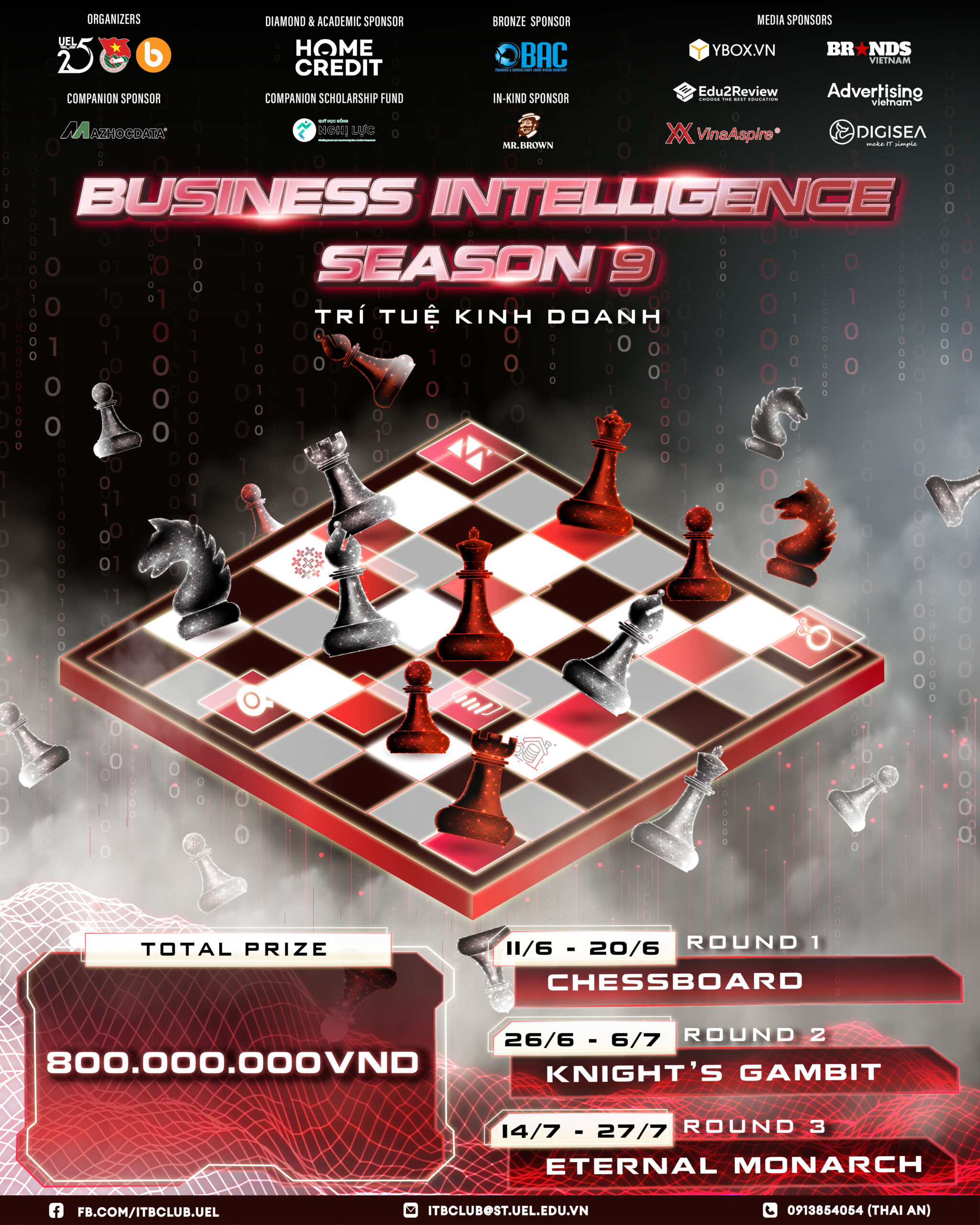 Business Intelligence là một cuộc thi học thuật trong lĩnh vực dữ liệu, đã trải qua 09 mùa với quy mô toàn quốc. Cuộc thi Business Intelligence không chỉ mở ra một sân chơi cho những sinh viên có đam mê về phân tích dữ liệu, mà còn mang lại những kiến thức và trải nghiệm thực tiễn. Cuộc thi cũng là cầu nối giữa những sinh viên tài năng đến các doanh nghiệp, mở ra cơ hội tuyển dụng, học tập và làm việc.